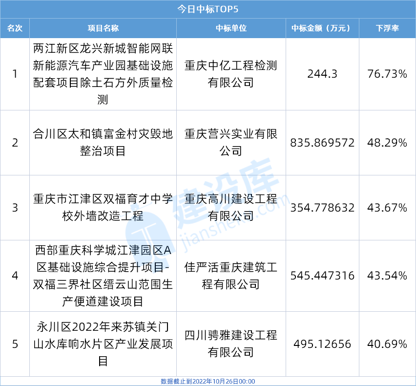 小tips:本文数据由建设库友情提供,数据源于重庆各大公共资源交易中心官方网站,信息真实可靠。