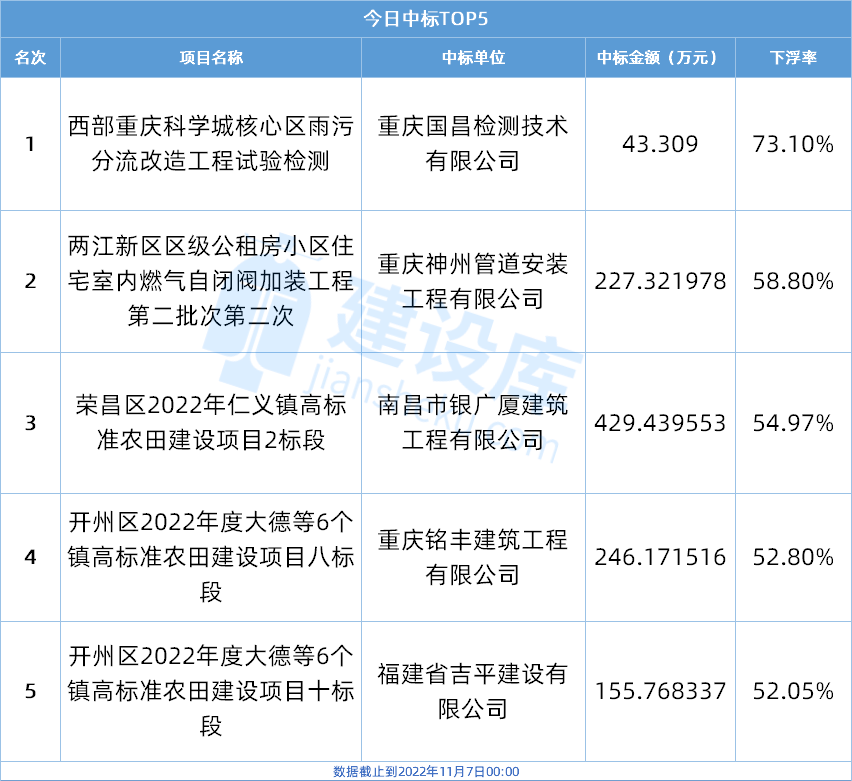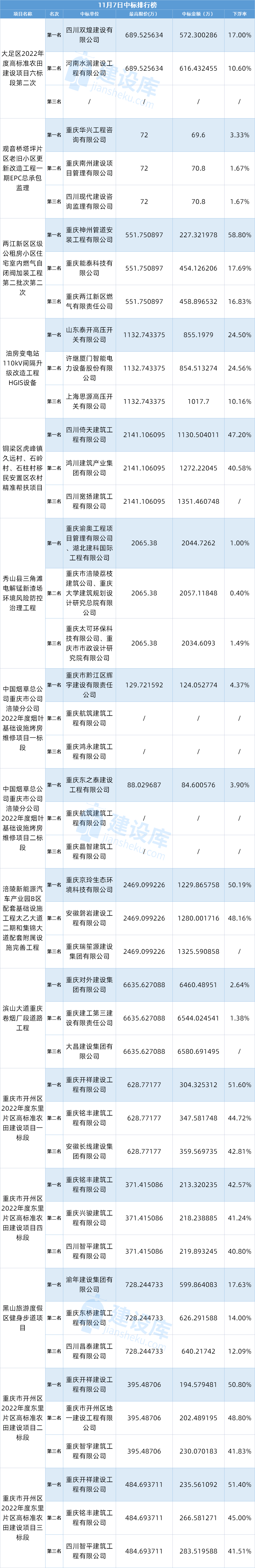 小tips:本文数据由建设库友情提供,数据源于重庆各大公共资源交易中心官方网站,信息真实可靠。