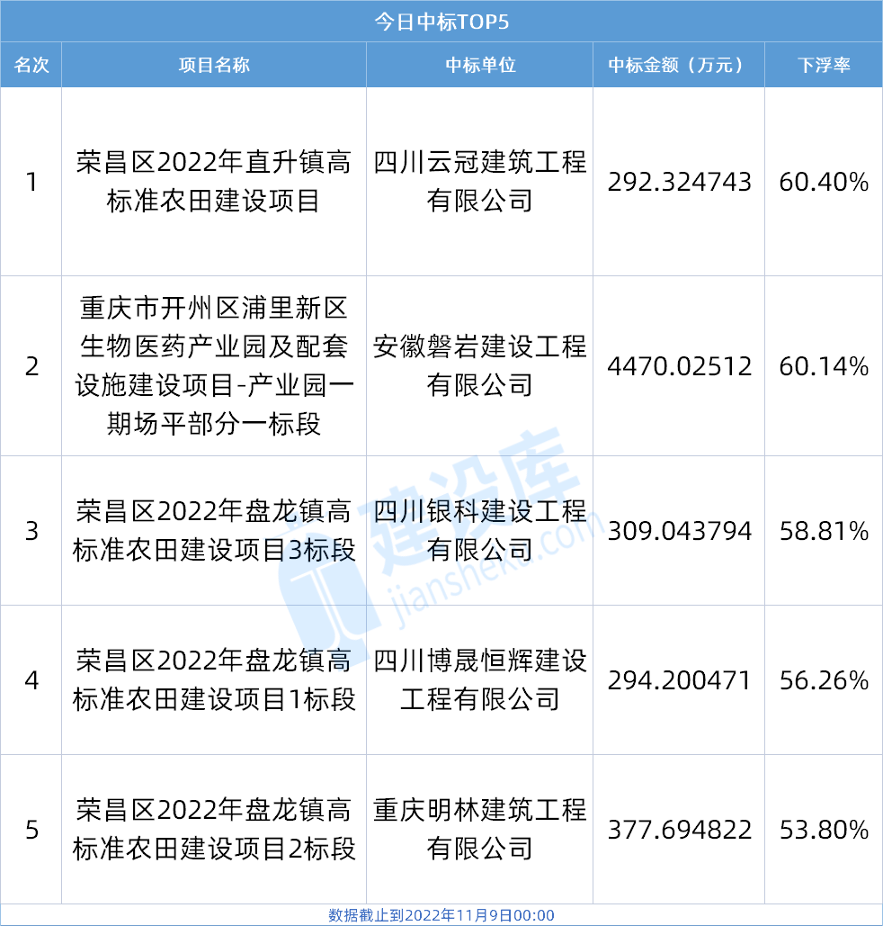 小tips:本文数据由建设库友情提供,数据源于重庆各大公共资源交易中心官方网站,信息真实可靠。