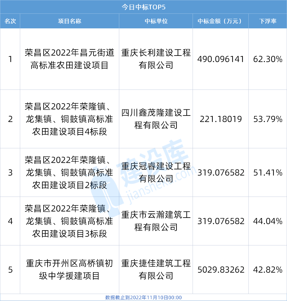 小tips:本文数据由建设库友情提供,数据源于重庆各大公共资源交易中心官方网站,信息真实可靠。