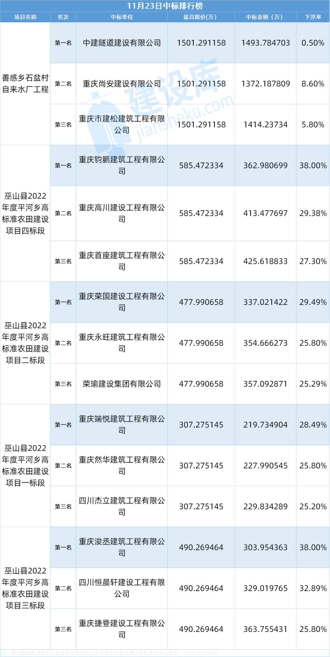 小tips:本文数据由建设库友情提供,数据源于重庆各大公共资源交易中心官方网站,信息真实可靠。