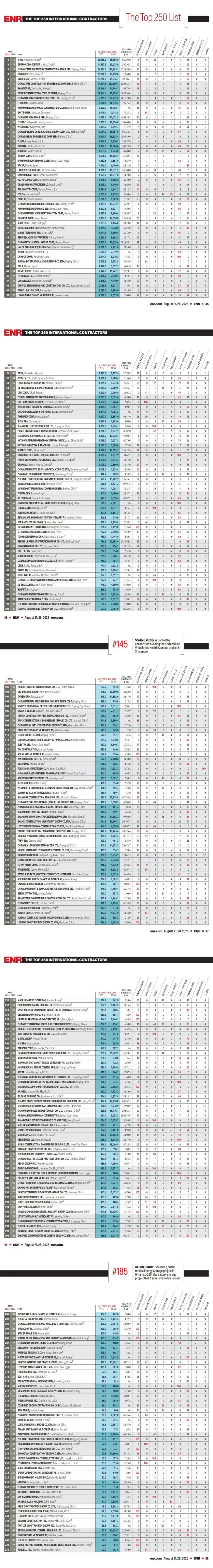 附件:2023年度《美国工程新闻纪录(ENR)》全球最大250家国际承包商完整榜单