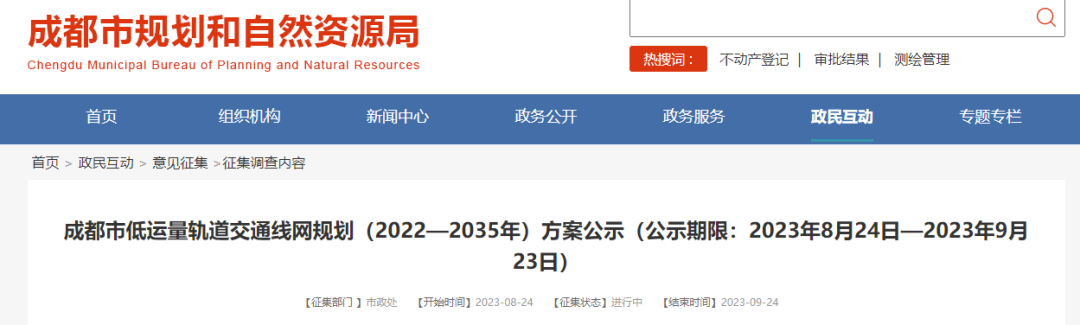方案公示期持续至2023年9月23日,在公示期间如对线网优化方案有意见和建议,可通过成都市规划和自然资源局网站、成都规划馆二楼公示公告公布区意见箱反馈。