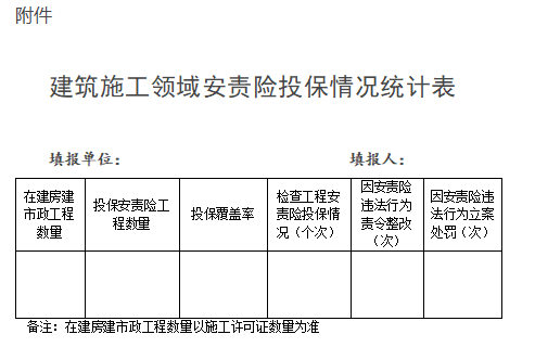 请各设区市建设主管部门于今年12月5日前将本地区《建筑施工领域安责险投保情况统计表》报送至我厅工程质量安全监管处。联系人:叶侹侹,电话:0571-81050846。