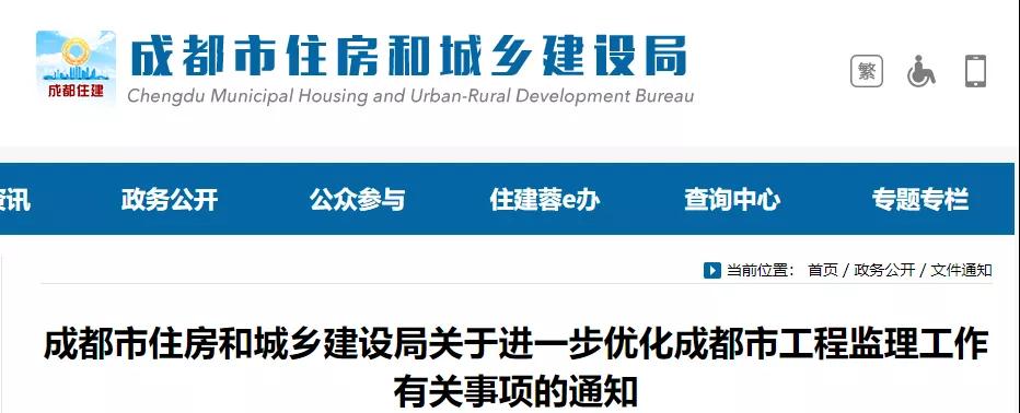 刚刚,成都市住建局发布《关于进一步优化成都市工程监理工作有关事项的通知》,自印发之日起施行,有效期五年。(成建委〔2018〕859号)同时废止。