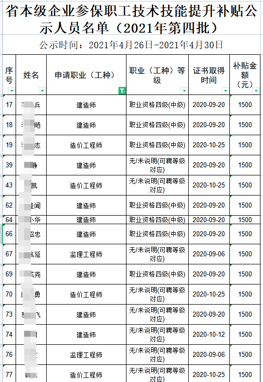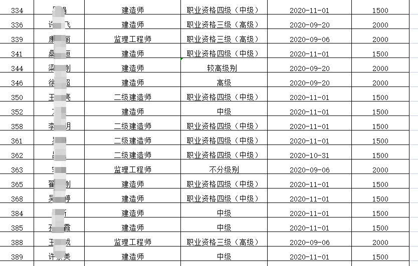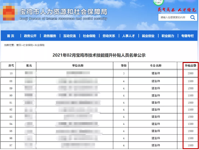 2、在济南3月份补贴名单中,1753名建造师拿到补贴:2000元(659人)、1500元(1090人)、1000元(4人)