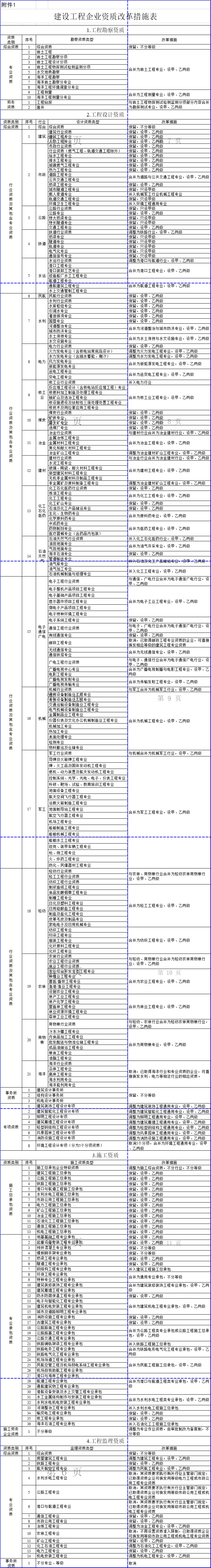 加强适中事后监管措施:开展“双随机,一公开”监管,依法查处违法违规行为并公开结果,加强信用监管,完善工程造价咨询企业信用体系,依法向社会公布企业信用状况,依法依规开展失信惩戒。推广应用执业保险制度,增强工程造价咨询企业的风险抵御能力,有效保障委托方合法权益。改革措施:将房地产开发企业资质由四级调整为两级,取消三级、四级,相应调整二级资质许可条件。加强适中事后监管措施:开展“双随机,一公开”监管,依法查处违法违规行为并公开结果,加强信用监管,依法依规对失信主体开展失信惩戒。发挥行业协会自律作用。改革措施:将建设工程勘察企业资质由三级调整为两级,取消丙级资质,相应调整乙级资质的许可条件。加强适中事后监管措施:开展“双随机、一公开”监管,对在建工程项目实施重点监管,依法查处违法违规行为并公开结果;严厉打击资质申报弄虚作假行为,对弄虚作假的企业依法予以通报或撤销其资质;加强信用监管,依法依规对失信主体开展失信惩戒。改革措施:将建设工程设计企业资质由三级或者四级调整为两级,取消丙级、丁级资质,相应调整乙级资质的许可条件。加强适中事后监管措施:开展“双随机、一公开”监管,对在建工程项目实施重点监管,依法查处违法违规行为并公开结果;严厉打击资质申报弄虚作假行为,对弄虚作假的企业依法予以通报或撤销其资质;加强信用监管,依法依规对失信主体开展失信惩戒。改革措施:将建设施工企业资质由三级调整为两级,取消三级资质,相应调整二级资质的许可条件。加强适中事后监管措施:开展“双随机、一公开”监管,对在建工程项目实施重点监管,依法查处违法违规行为并公开结果;严厉打击资质申报弄虚作假行为,对弄虚作假的企业依法予以通报或撤销其资质;加强信用监管,依法依规对失信主体开展失信惩戒。6、工程监理丙级、事务所、公路水利、港口航道、农林工程;1、依托相关政务服务平台,实行电子化申报和审批;2、积极推进与有关部门信息共享,对能够通过信息共享方式获取、核验的材料,不再要求申请人提供;3、通过开展电子化核验,企业安全生产条件动态监管一级工程项目监督检查等措施,对企业及其项目安全生产条件进行核查,对不具备安全生产条件的企业,依法实施暂扣或者吊销安全生产许可证等处罚;4、严格落实事故企业安全生产条件复核制度,对安全生产条件降低的企业,依法实施暂扣或者吊销安全生产许可证等处罚;5、强化信用监管,依法依规对失信主体开展失信惩戒。1、精简申报材料,不再要求申请人提供法定代表人和高级管理人员任职文件、身份证及专业管理人员劳动合同、上一年度财务报告、近3年房地产开发统计年报基层表、项目手册及在建项目进度说明等。对于能与登记注册、社会保险缴纳实现共享的信息,不再要求企业重复提供;2、依托全国一体化政务服务平台身份认证、数据共享、电子印章、电子证照等基础支撑,按照“一网通办”要求办理房地产开发企业资质核定工作,全面实行电子化评审;3、开展“双随机、一公开”监管,依法查处违法违规行为并公开结果;4、加强信用监管,依法依规对失信主体开展失信惩戒;5、发挥行业协会自律作用。3)建设工程质量检测机构资质、燃气经营许可证、建设工程勘察综合、专业甲乙级、建筑工程设计行业甲级、乙级及事务所、施工企业综合、甲级、乙级;监理甲级、乙级。2、加快推动新型共享,不在要求申请人提供人员身份证明、社保证明、企业资质和注册人员资格证书等材料;3、开展“双随机、一公开”监管,对在建工程项目实施重点监管,依法查处违法违规行为并公开结果;4、严厉打击资质申报弄虚作假行为,对弄虚作假的企业依法予以通报或撤销其资质;5、加强信用监管,依法依规对失信主体开展失信惩戒。6月份,网上不少公众号都发布了资质新标准意见稿,这个虽然官方没有对外公开发布,但是肯定是有依据的,所以现在还没法说。甚至之前看到有个省的勘察设计协会官方号也发布了同样的信息,看了认证信息确实是官方的,不清楚是他们真的收到了还是跟风……