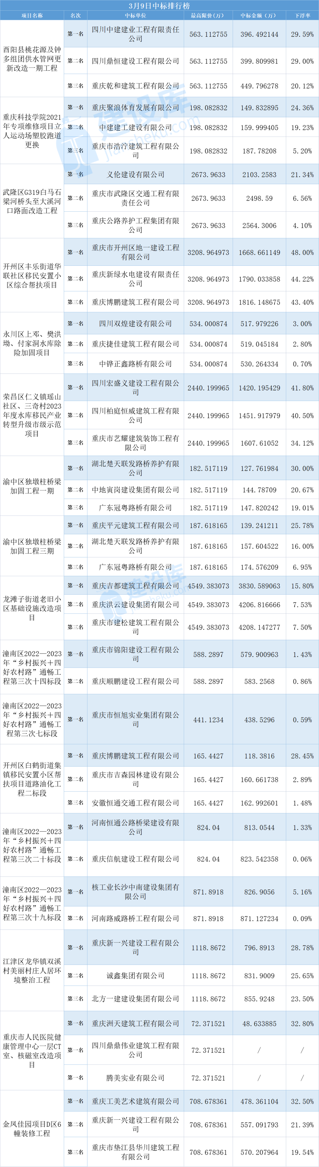 小tips:本文数据由建设库友情提供,数据源于重庆各大公共资源交易中心官方网站,信息真实可靠。
