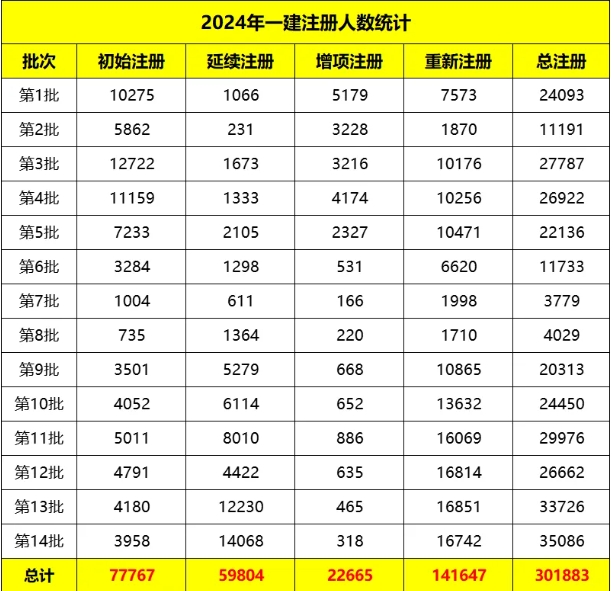 本批次共22838人符合一级建造师注册条件,其中,初始注册共3378人,延续注册6118人,增项注册303人,重新注册14039人。