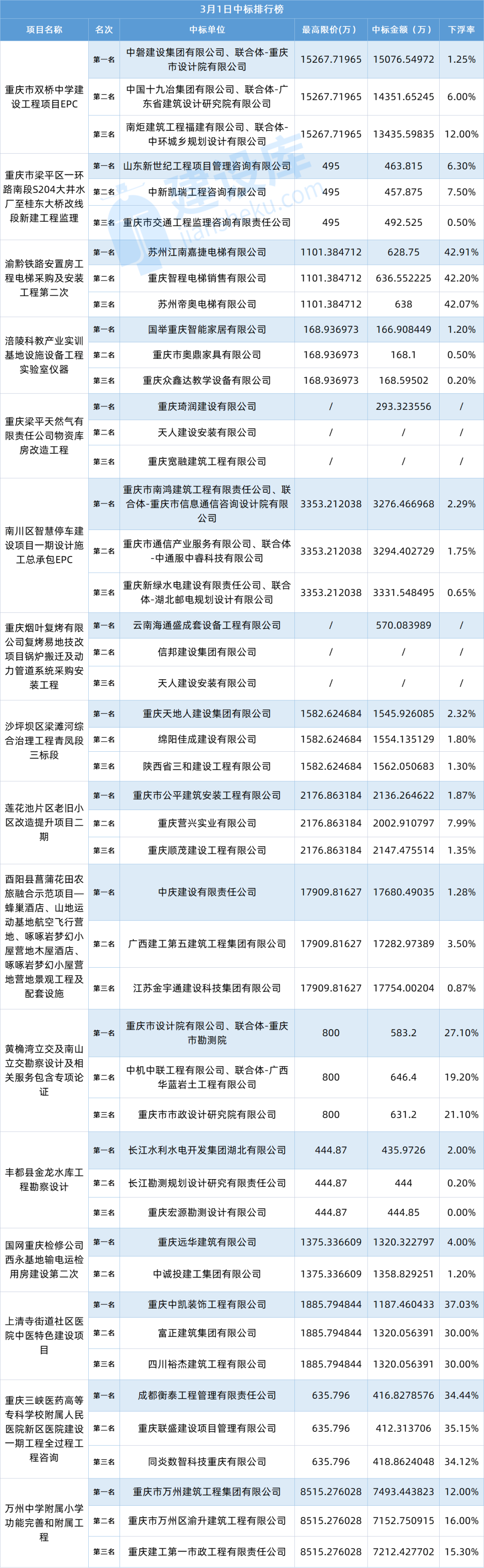 小tips:本文数据由建设库友情提供,数据源于重庆各大公共资源交易中心官方网站,信息真实可靠。