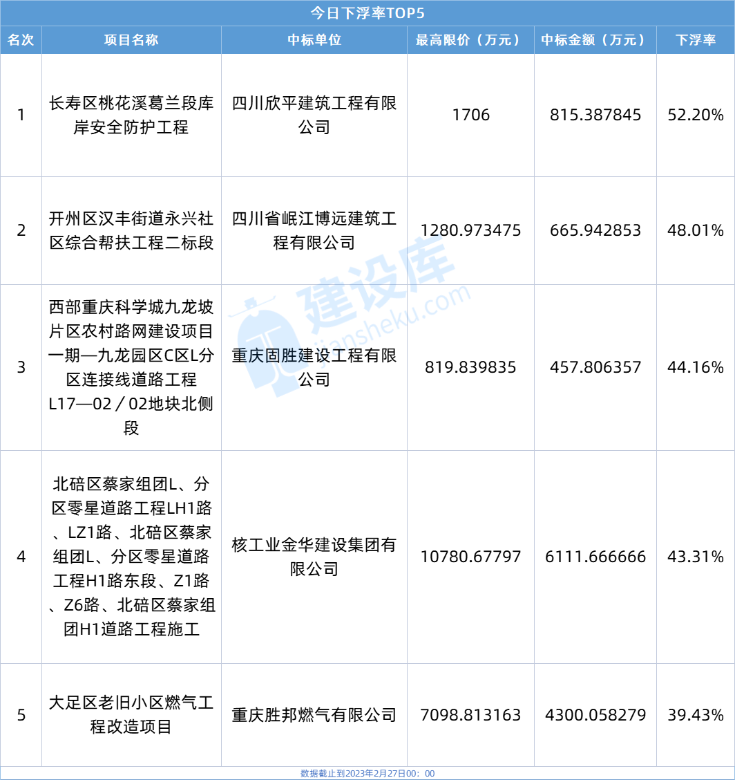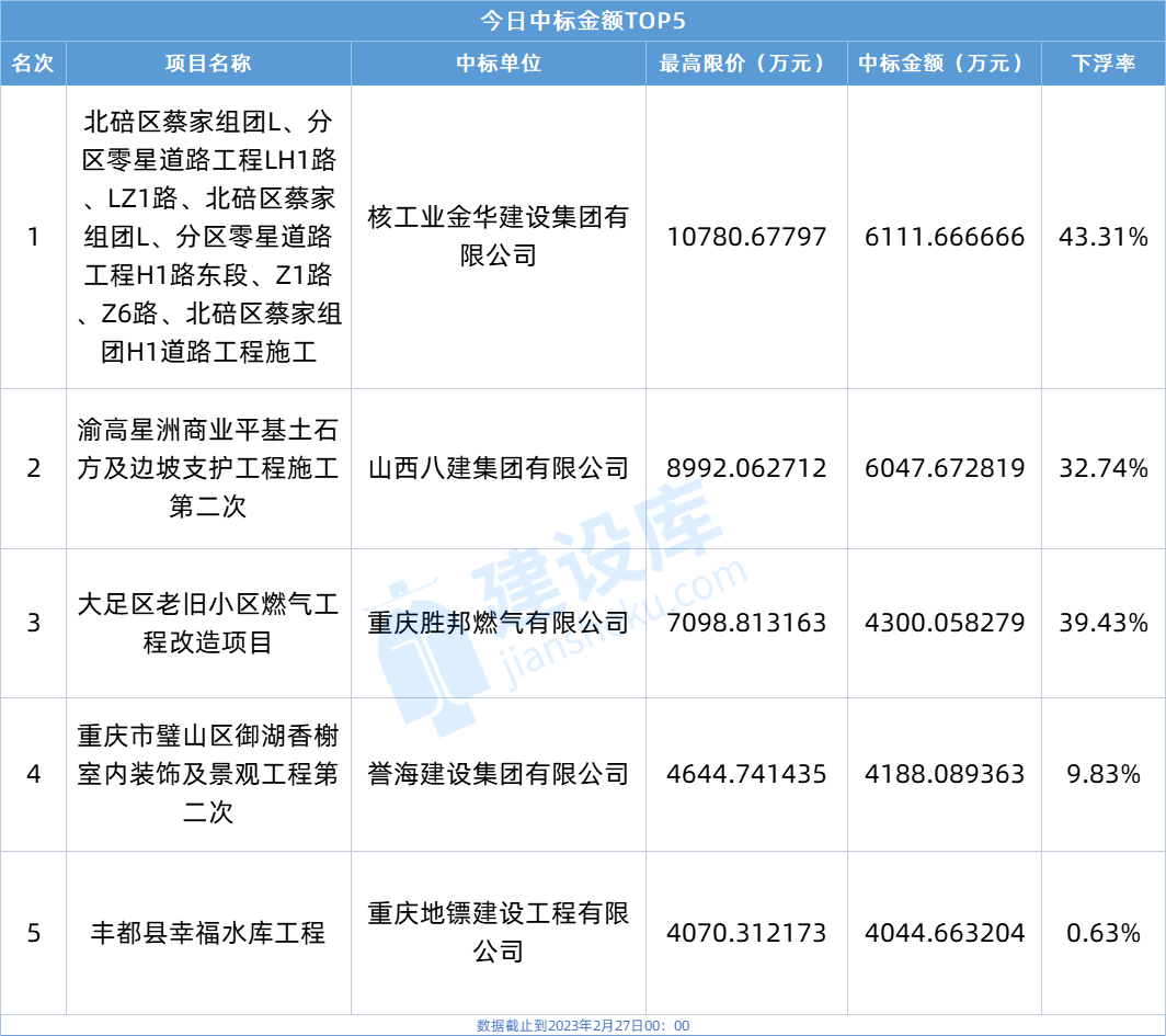 小tips:本文数据由建设库友情提供,数据源于重庆各大公共资源交易中心官方网站,信息真实可靠。