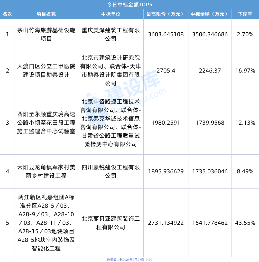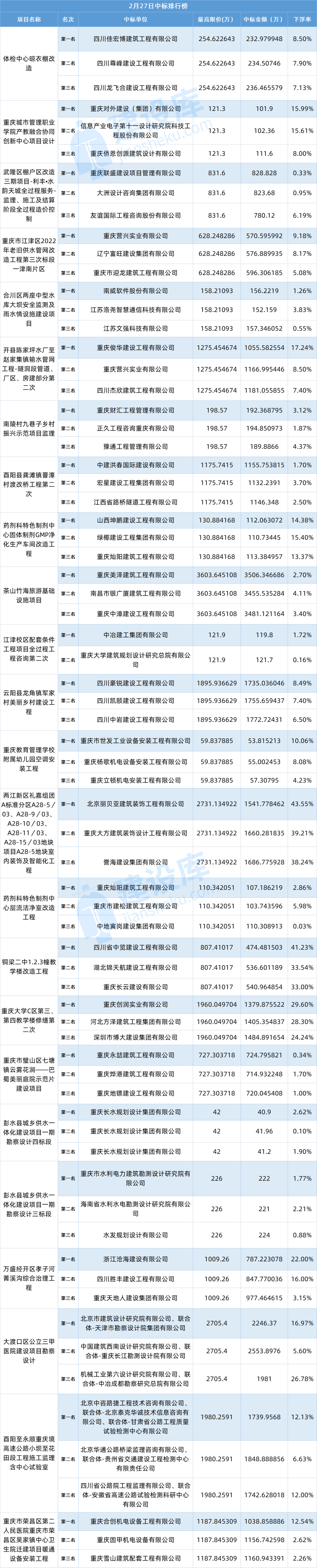 小tips:本文数据由建设库友情提供,数据源于重庆各大公共资源交易中心官方网站,信息真实可靠。