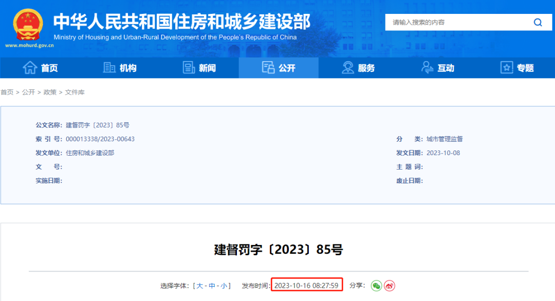 我部依法作出《住房和城乡建设部行政处罚意见告知书》(建督罚告字〔2023〕65号),你于2023年9月11日签收,未在规定时间内提出书面陈述(申辩)或听证要求。