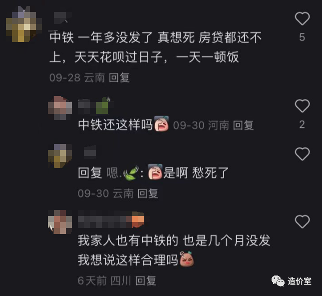中铁建某局员工也吐槽不断。刚刚校招员工甚至还未见到工资的模样。