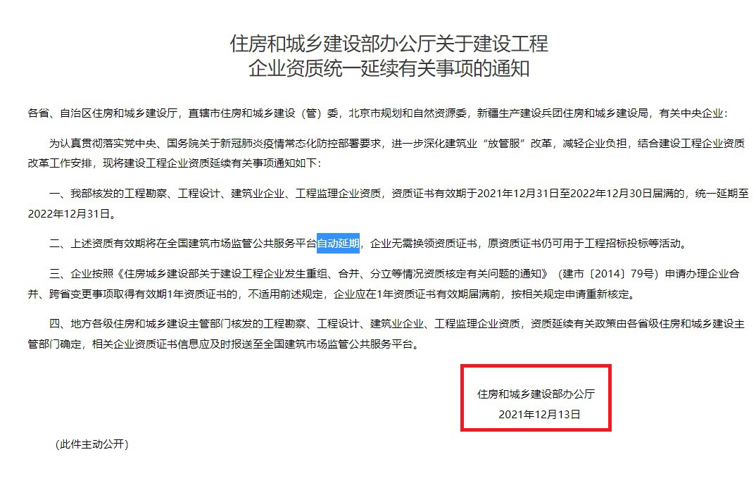 为统筹做好建设工程企业资质证书有效期到期延续工作,现就有关事项通知如下:
