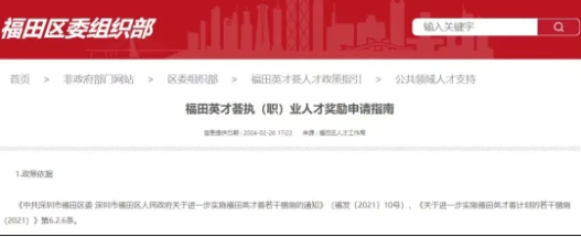 近日,深圳市福田区委发布《福田英才荟执(职)业人才奖励申请指南》,详细介绍了各(执)职业人才奖励政策及申请办法。