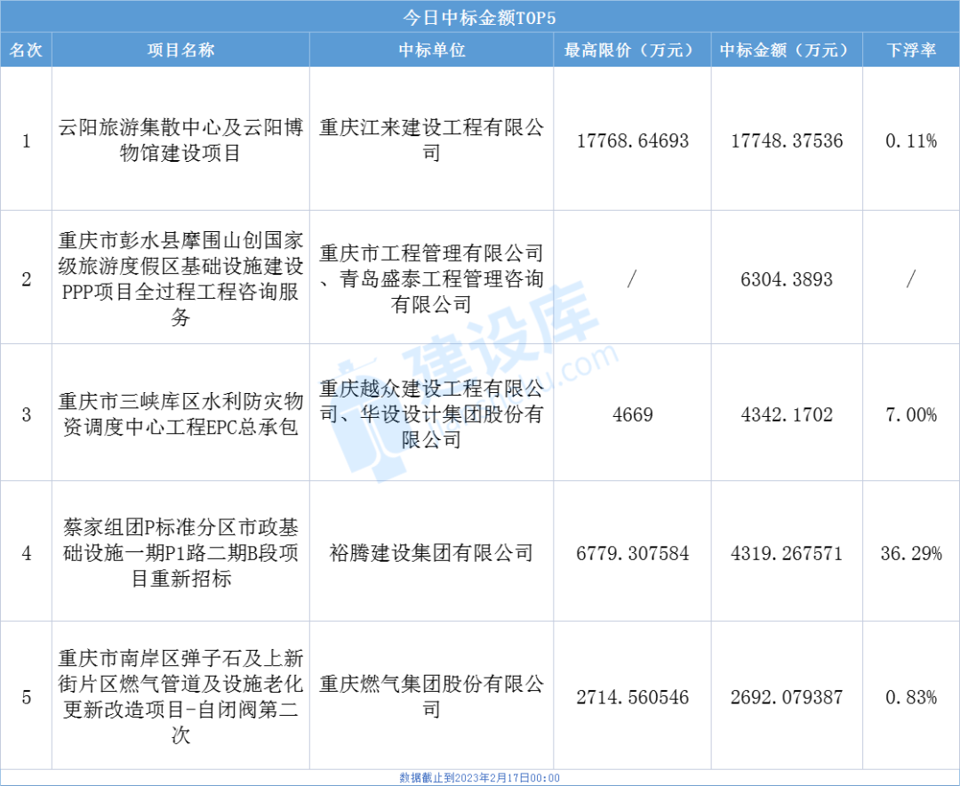 小tips:本文数据由建设库友情提供,数据源于重庆各大公共资源交易中心官方网站,信息真实可靠。