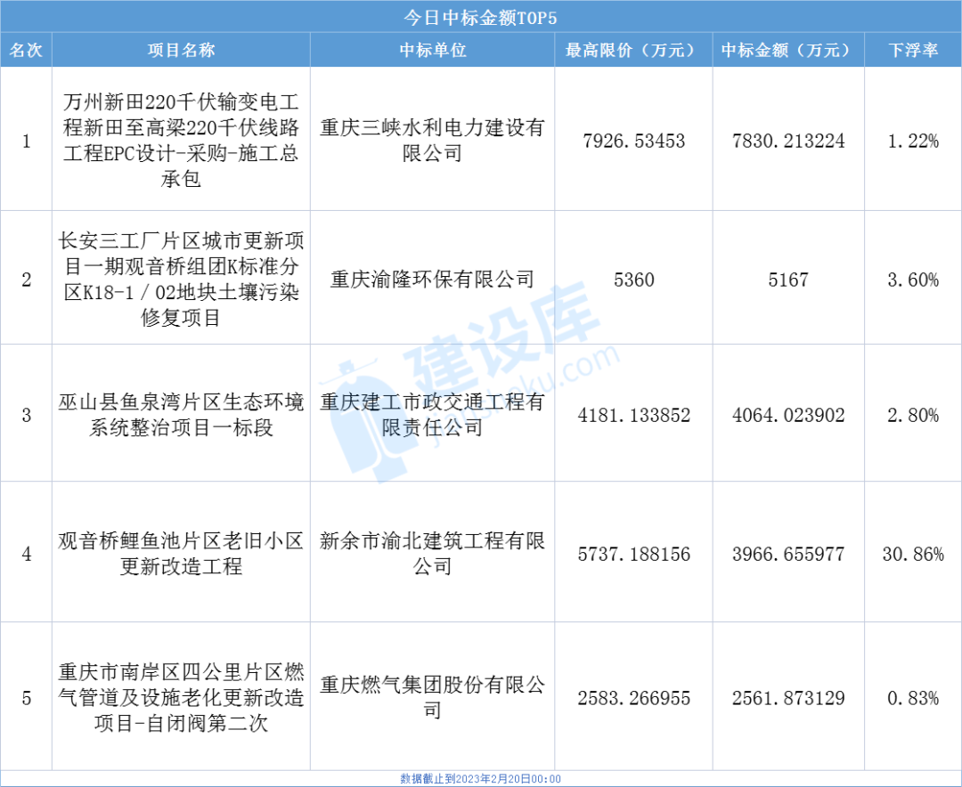 小tips:本文数据由建设库友情提供,数据源于重庆各大公共资源交易中心官方网站,信息真实可靠。