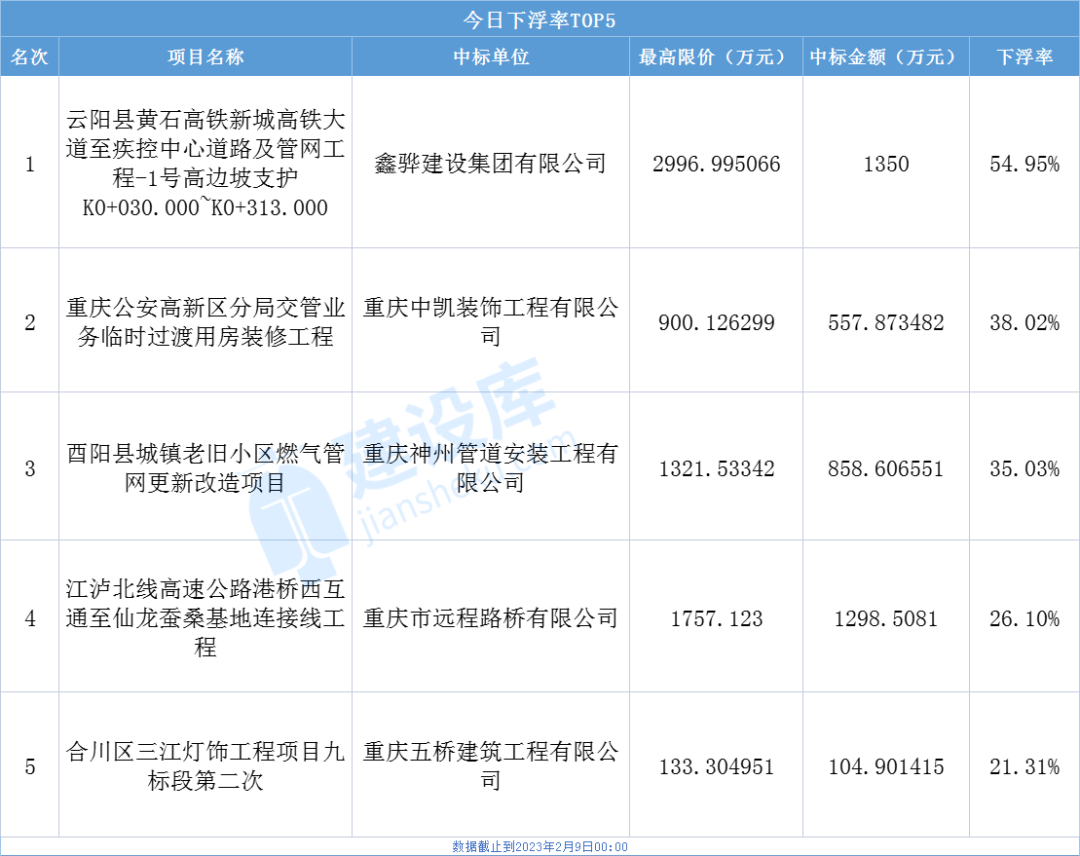 小tips:本文数据由建设库友情提供,数据源于重庆各大公共资源交易中心官方网站,信息真实可靠。