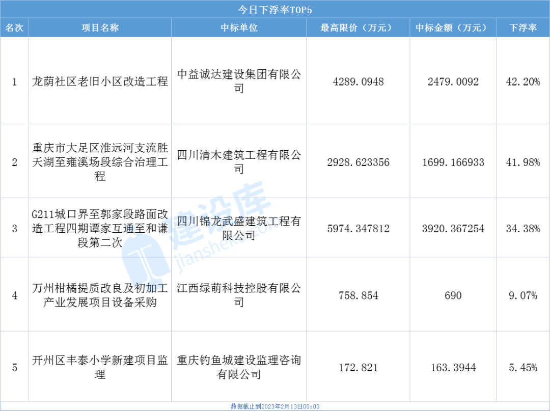 小tips:本文数据由建设库友情提供,数据源于重庆各大公共资源交易中心官方网站,信息真实可靠。