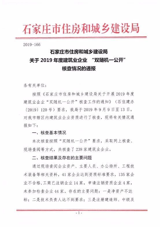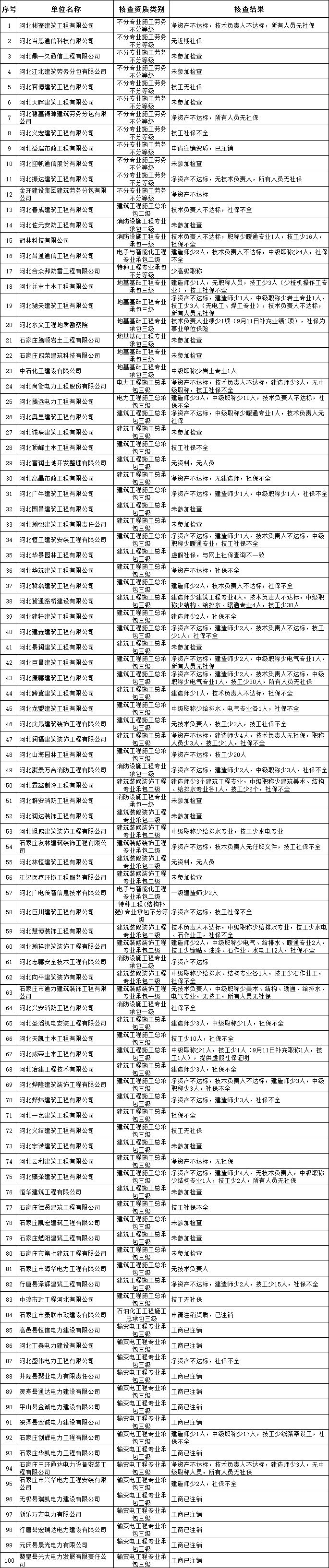 本次共核查了238家建筑业企业,其中,41家达到资质标准要求,197家不合格(含工商已注销企业14家,申请注销资质企业4家,未参加检查企业44家)。