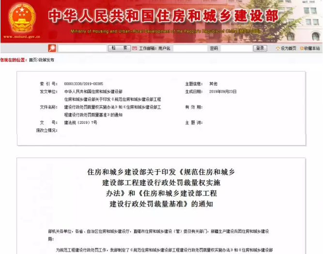 10月28日,住房和城乡建设部公布《规范住房和城乡建设部工程建设行政处罚裁量权实施办法》,自11月1日起施行。《办法》规定,注册执业人员对建设工程质量、安全事故负有责任且存在注册单位与实际工作单位不一致,或者买卖租借执业资格证书等"挂证"行为的,应当依法在《裁量基准》相应档次内从重处罚。情节特别严重的,可以按高一档次处罚。