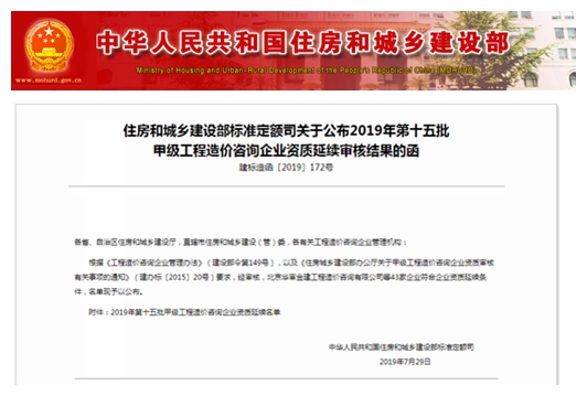 根据《工程造价咨询企业管理办法》(建设部令第149号),以及《住房城乡建设部办公厅关于甲级工程造价咨询企业资质审核有关事项的通知》(建办标〔2015〕20号)要求,经审核,北京华审金建工程造价咨询有限公司等43家企业符合企业资质延续条件,名单现予以公布。