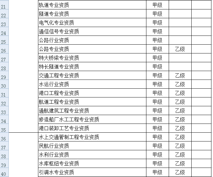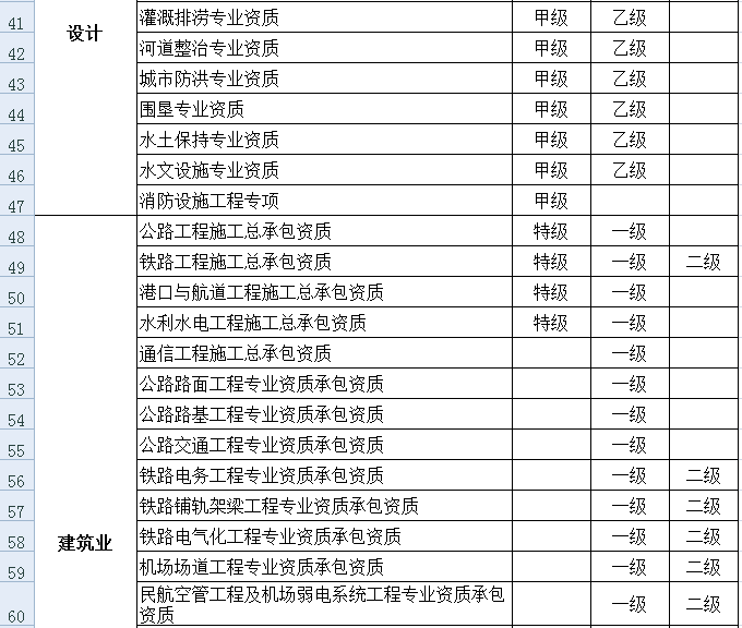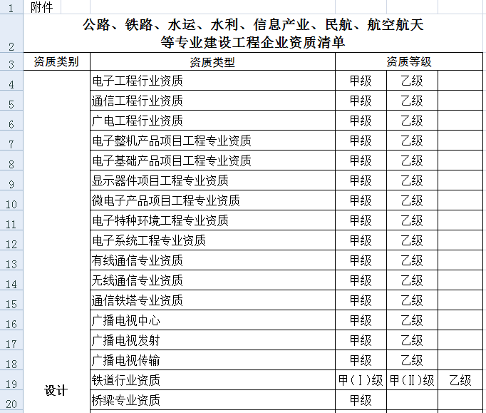 附件:公路、铁路、水运、水利、信息产业、民航、航空航天等专业建设工程企业资质清单