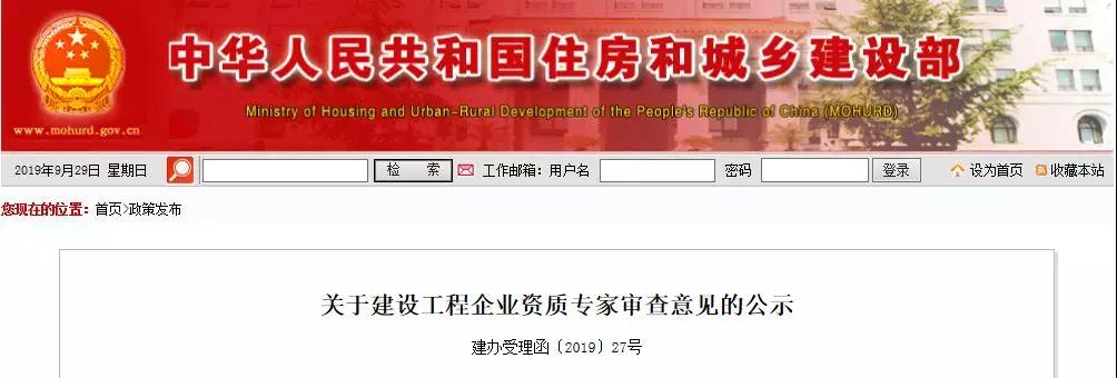 近日,住建部官网发布最新的《关于建设工程企业资质专家审查意见的公示(建办受理函〔2019〕27号)》,其中施工企业资质公示32家,共申报资质32项同意2项,不同意30项。