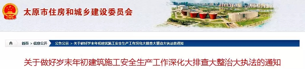 2019年1月3日,太原市住建委下发《关于做好岁末年初建筑施工安全生产工作深化大排查大整治大执法的通知》。