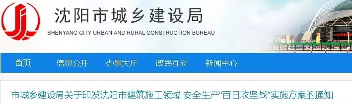 2019年1月3日,沈阳市城乡建设局印发《建筑施工领域安全生产“百日攻坚战”实施方案》,