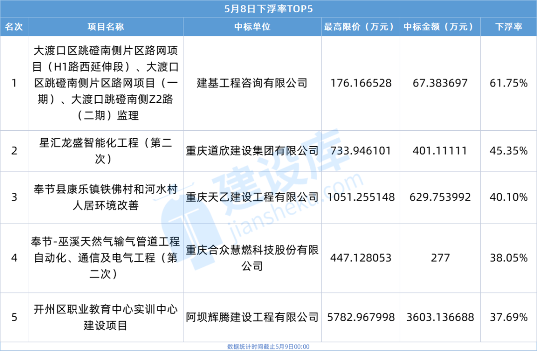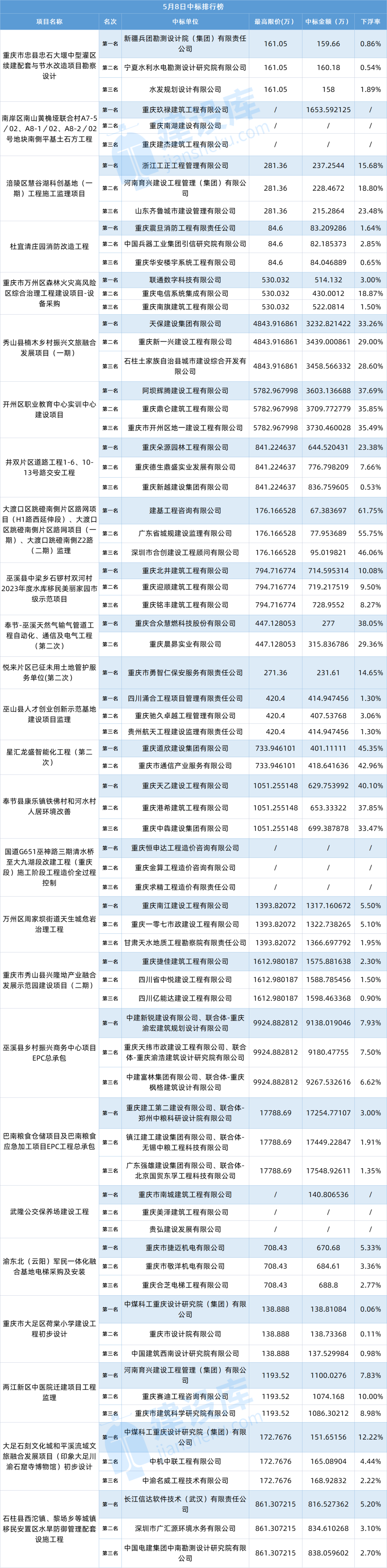 小tips:本文数据由建设库友情提供,数据源于重庆各大公共资源交易中心官方网站,信息真实可靠。