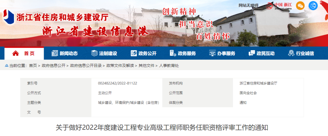 根据《浙江省人力资源和社会保障厅关于做好2022年度高级职称评审工作的通知》(浙人社函〔2022〕31号)精神,现将2022年度建设工程专业正高级工程师职务任职资格评审工作有关事项通知如下: