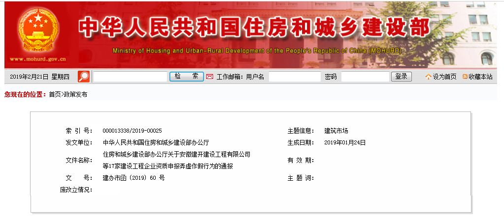 2019年不到两个月的时间,住建部通报了47家企业资质申报弄虚作假,这在以往还是不多见的。根据通报原文,这些企业除了被通报批评,不批准其资质申请,还将其不良行为在全国建筑市场监管公共服务平台予以公布。自本通报印发之日起1年内不受理上述企业申请该项行政许可。