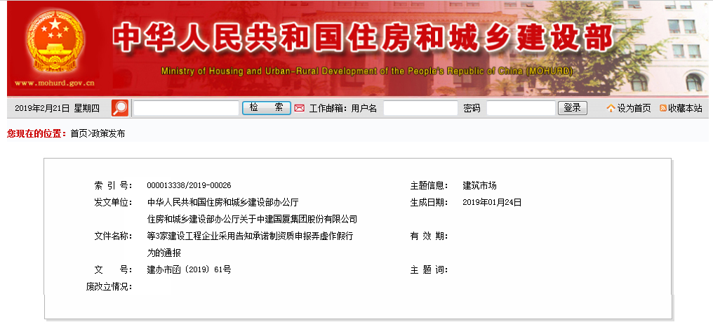 住房和城乡建设部办公厅关于中建国厦集团股份有限公司等3家建设工程企业采用告知承诺制资质申报弄虚作假行为的通报