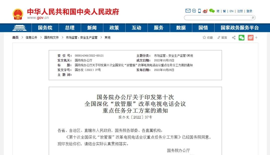 第十次全国深化“放管服”改革电视电话会议重点任务分工方案
