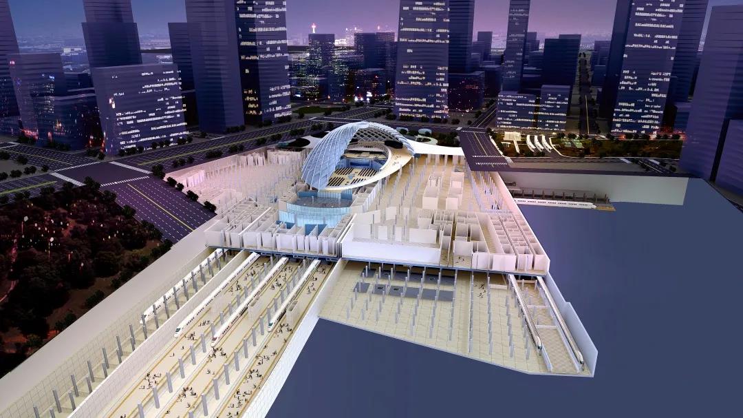 滨海站站房建筑面积8.6万平方米、站场规模3台6线