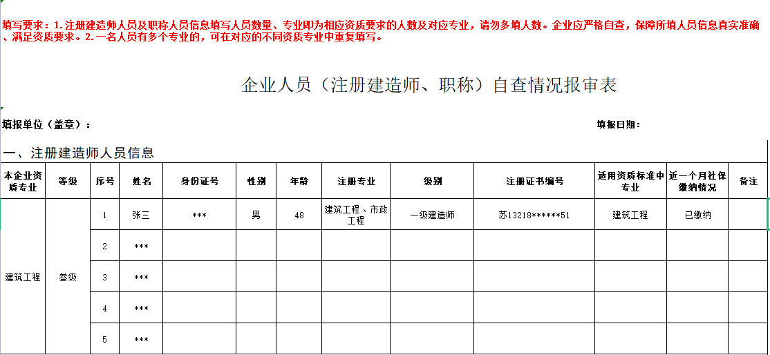 4.企业注册执业人员、中级以上职称人员、技术工人等主要人员的专业等级、人数、社会保险缴纳情况是否符合资质标准要求;
