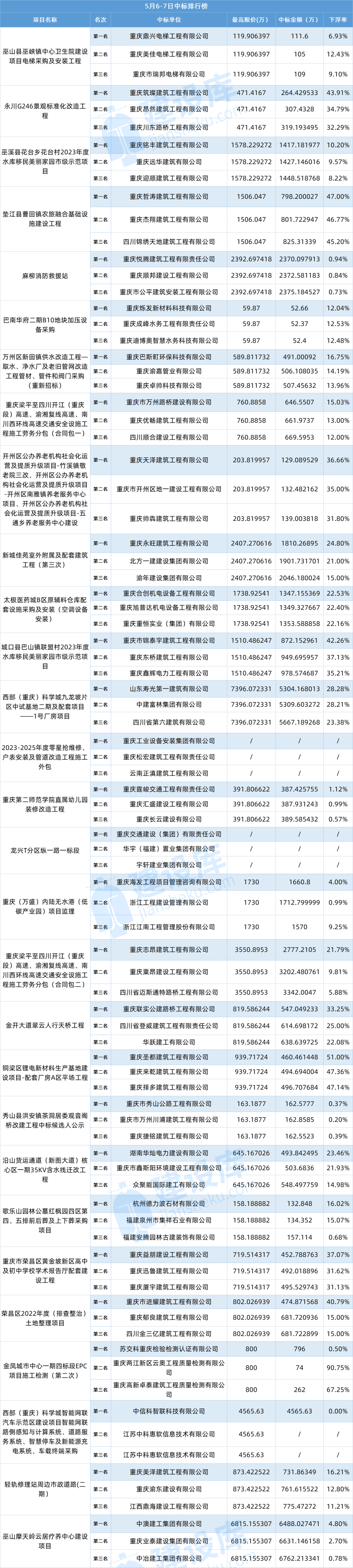 小tips:本文数据由建设库友情提供,数据源于重庆各大公共资源交易中心官方网站,信息真实可靠。