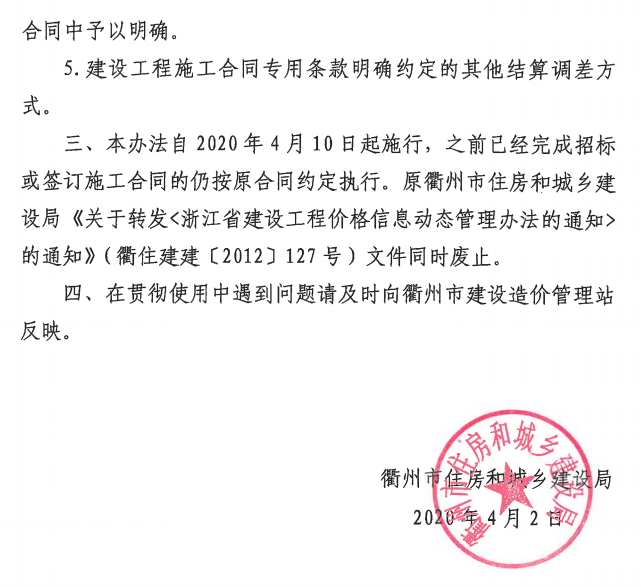 附件:衢住建办〔2020〕37号关于进一步加强衢州市建设工程计价要素动态管理的指导意见.pdf