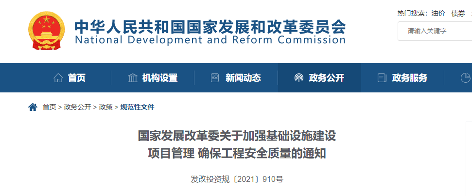 近年来,各地方不断加强基础设施等领域建设项目管理,工程安全质量水平不断提高。但仍有一些项目管理不严,相关管理规定落实不到位,造成工程质量下降、安全隐患增加。为进一步加强基础设施建设项目管理,坚持质量第一,保障人民群众生命财产安全,现就有关事项通知如下: