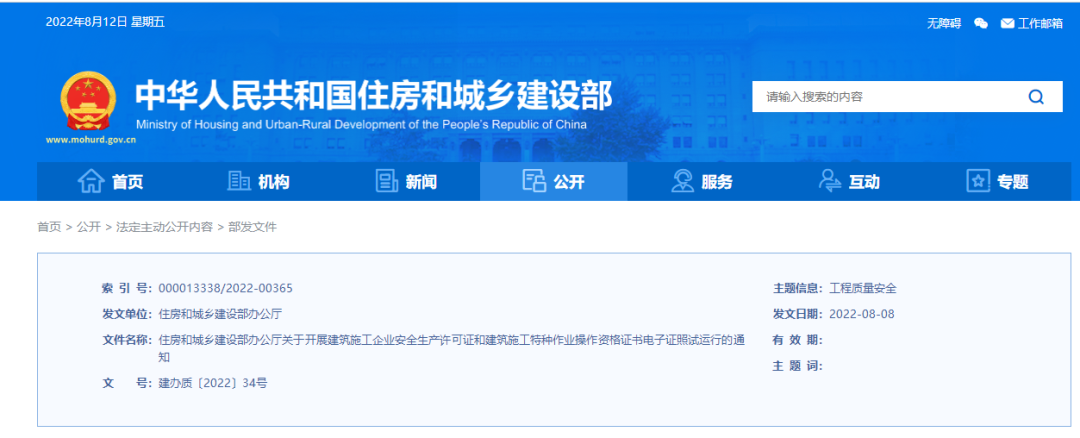 2.全国一体化政务服务平台 电子证照 建筑施工特种作业操作资格证书(C0304-2022) 3.全国工程质量安全监管信息平台电子证照归集共享业务规程(试运行)