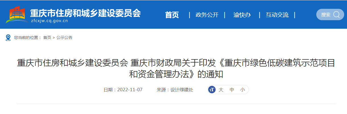 关于印发《重庆市绿色低碳建筑示范项目和资金管理办法》的通知