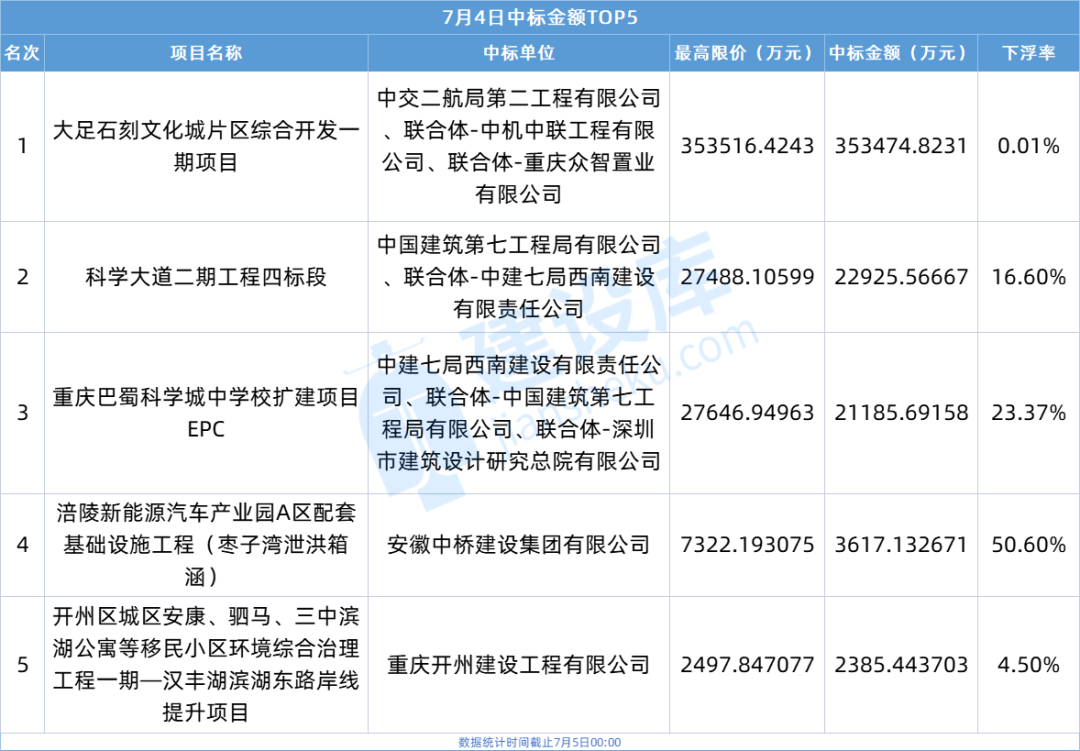 中标金额TOP5