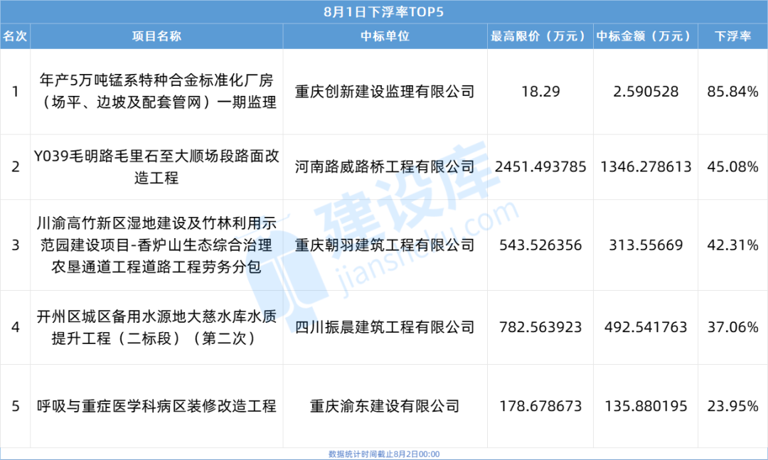 小tips:本文数据由建设库友情提供,数据源于重庆各大公共资源交易中心官方网站,信息真实可靠。