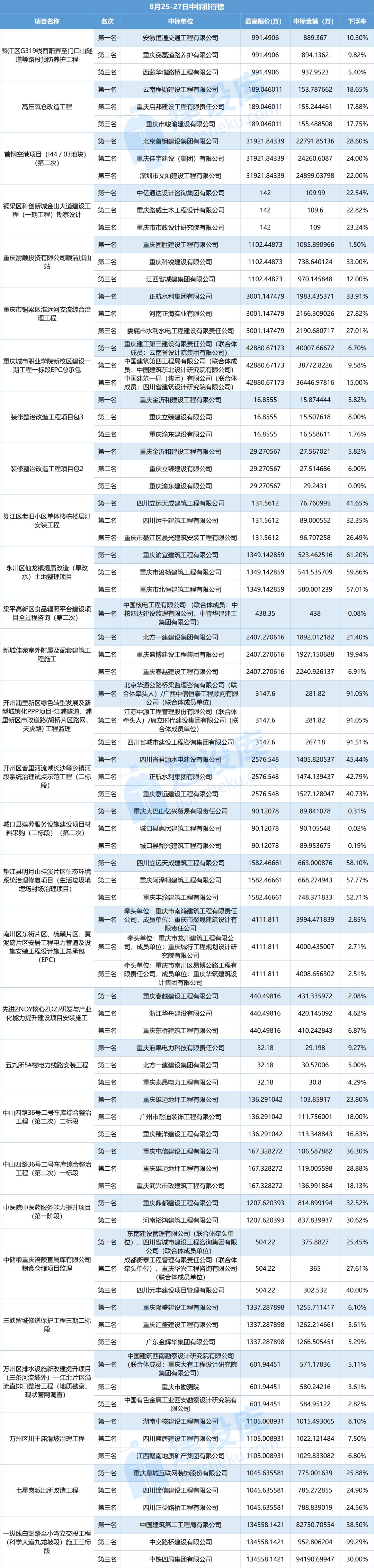 小tips:本文数据由建设库友情提供,数据源于重庆各大公共资源交易中心官方网站,信息真实可靠。