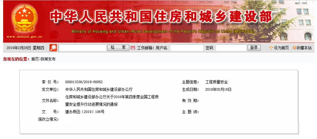 住房和城乡建设部办公厅关于2018年第四季度