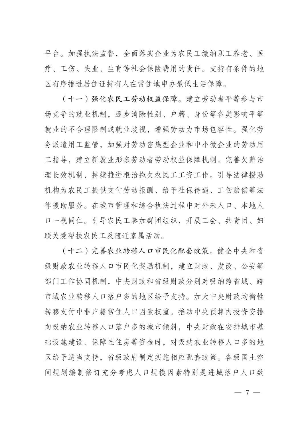 强化农民工劳动权益保障。建立劳动者平等参与市场竞争的就业机制,逐步消除性别、户籍、身份等各类影响平等就业的不合理限制或就业歧视,增强劳动力市场包容性。强化劳务派遣用工监管,加强对劳动密集型企业和中小微企业的劳动用工指导,建立新就业形态劳动者劳动权益保障机制。完善欠薪治理长效机制,持续推进根治拖欠农民工工资工作。引导法律援助机构为农民工提供支付劳动报酬、给予社保待遇、工伤赔偿等法律援助服务。在城市管理和综合执法过程中对外来人口、本地人口一视同仁。