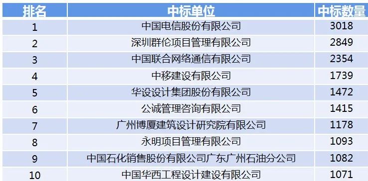 五、中标总数量企业排行