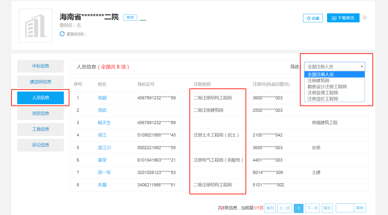 新增了住建部16类注册人员,新增人员信息板块、注册人员详请。